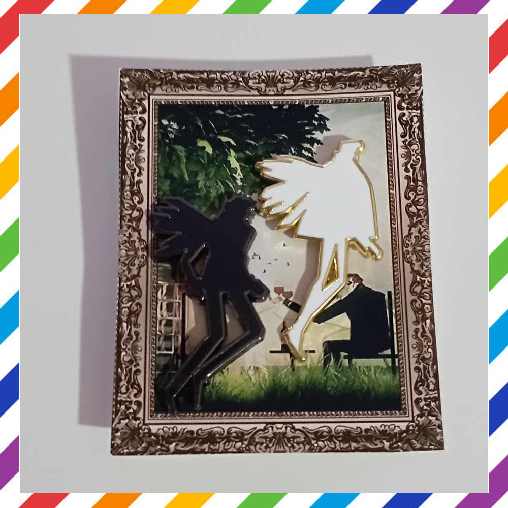 Nice metal Enamel Pins inspired by the figures of Crowley and Aziraphale in the intro of the Good Omens TV series theme song and made with an original design by Zefkiel Noir