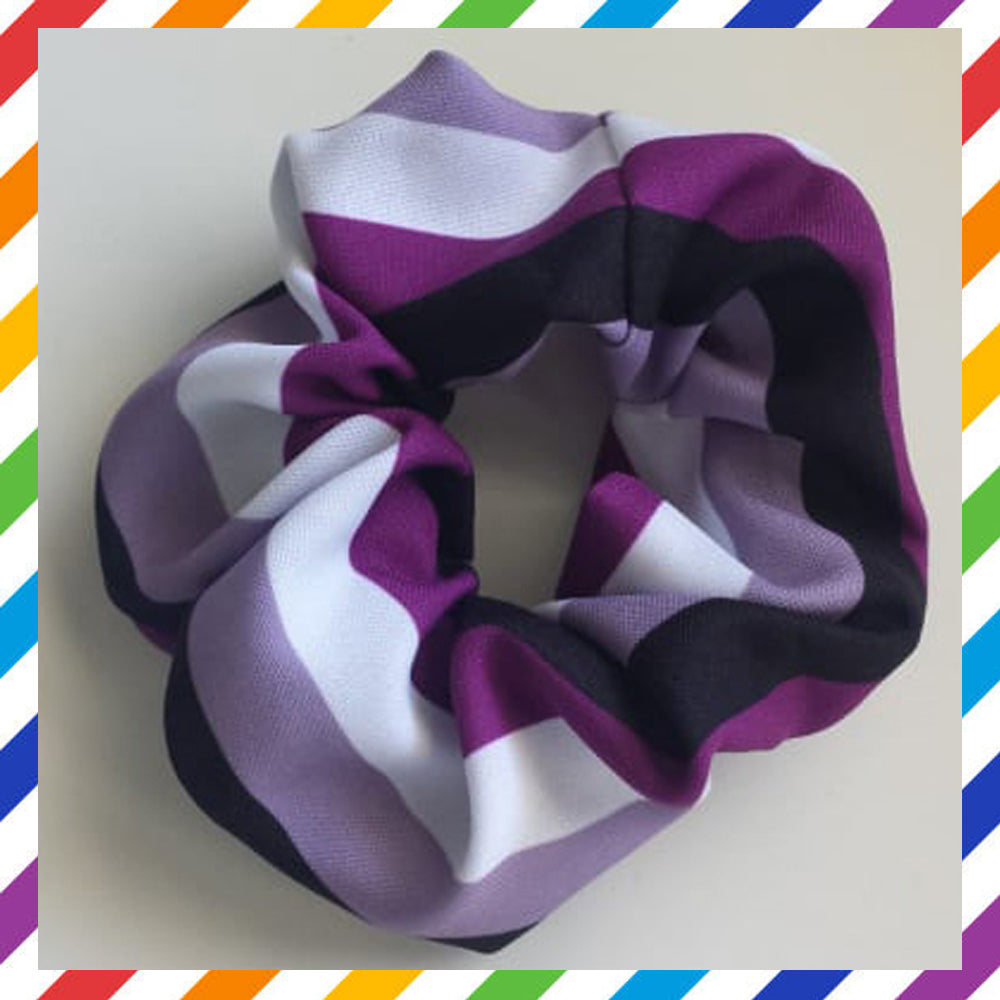 Hair scrunchy, handcrafted with digitally printed fabric, with Asexual flag