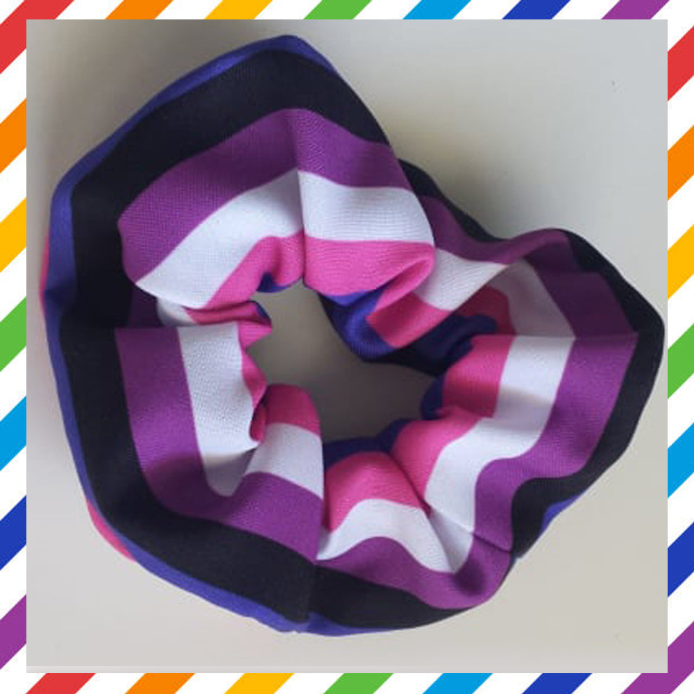 Hair scrunchy, handcrafted with digitally printed fabric, with genderfluid flag.