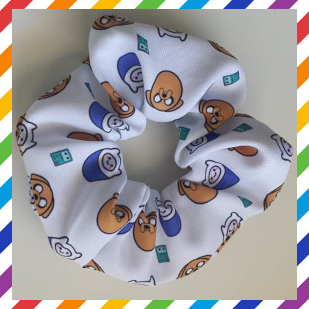 Hair scrunchy, handcrafted with digitally printed fabric, inspired by Adventure Time in a nice cropped version created by our artist Zefkiel Noir