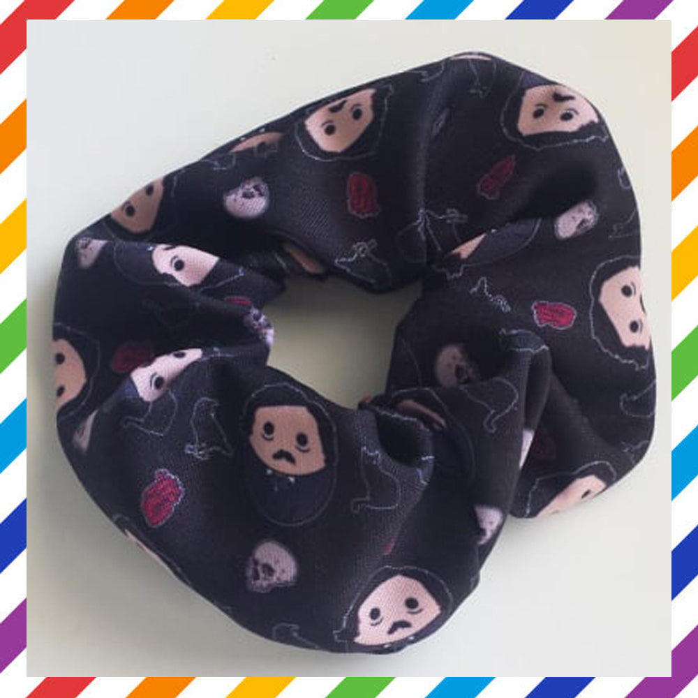 Hair scrunchy, handcrafted with digitally printed fabric, inspired by Edgar Allan Poe in a nice cropped version created by our artist Zefkiel Noir