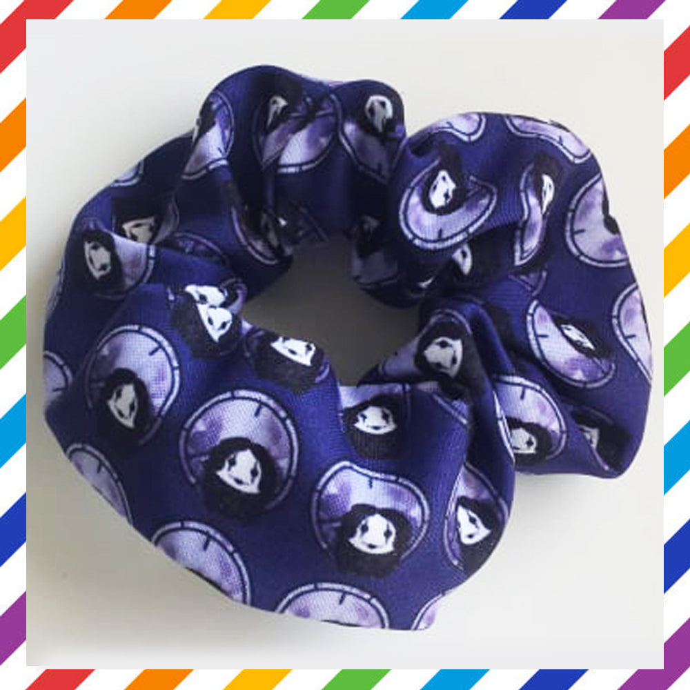 Hair scrunchy, handcrafted with digitally printed fabric, inspired by the Raven in a nice cropped version created by our artist Zefkiel Noir
