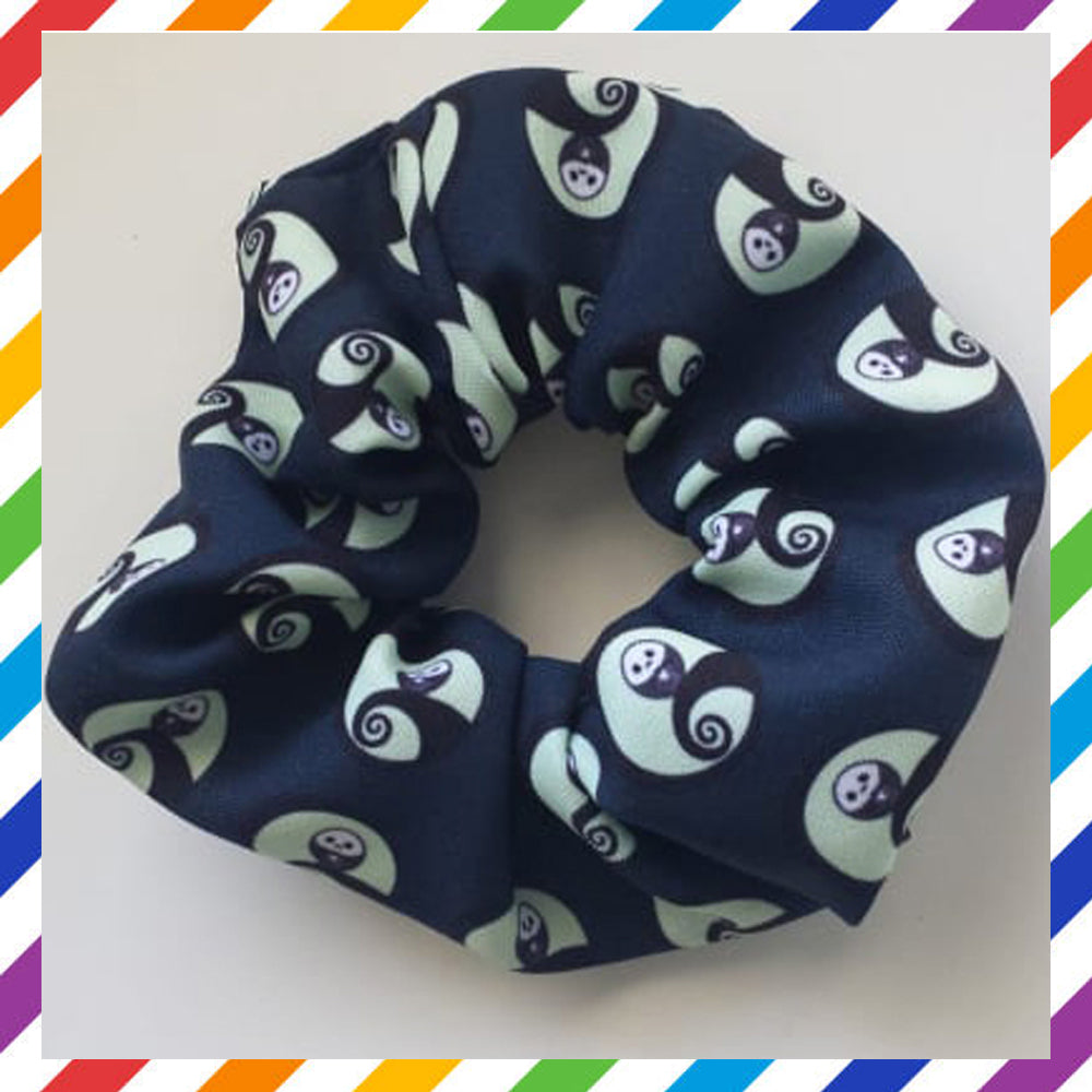 Hair scrunchie, handcrafted with digitally printed fabric, inspired by Nightmare Before Christmas in a nice cropped version created by our artist Zefkiel Noir