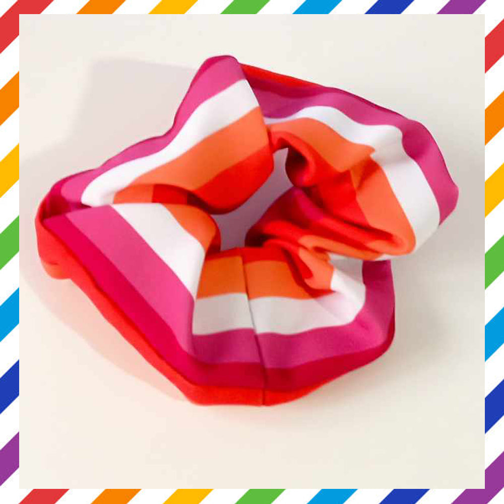 Hair scrunchy, handcrafted with digitally printed fabric, with Lesbian flag