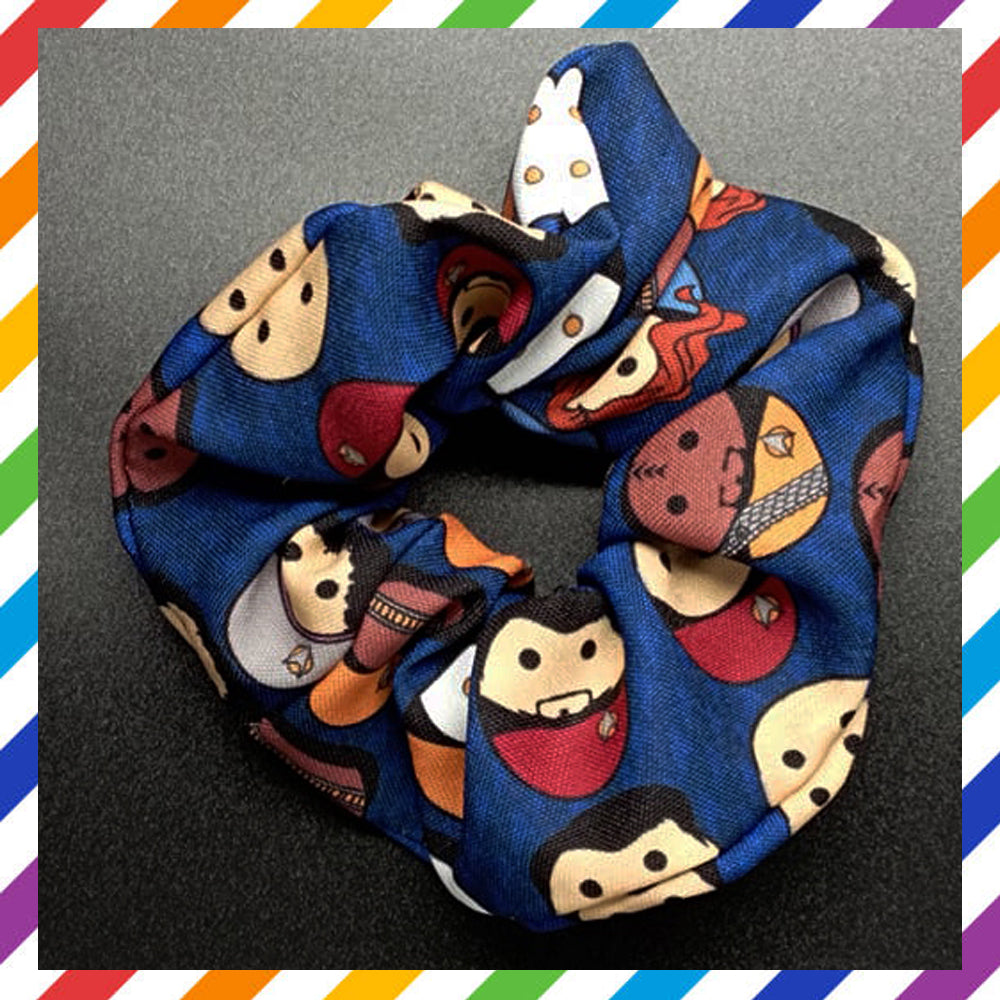Locally printed and handcrafted scrunchy featuring the Potato version of The Next Generation crew.