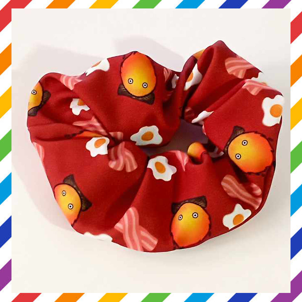 Scrunchy (elastico per capelli) con il design ispirato a Calcifer nella versione Potato ideata da Zefkiel Noir.