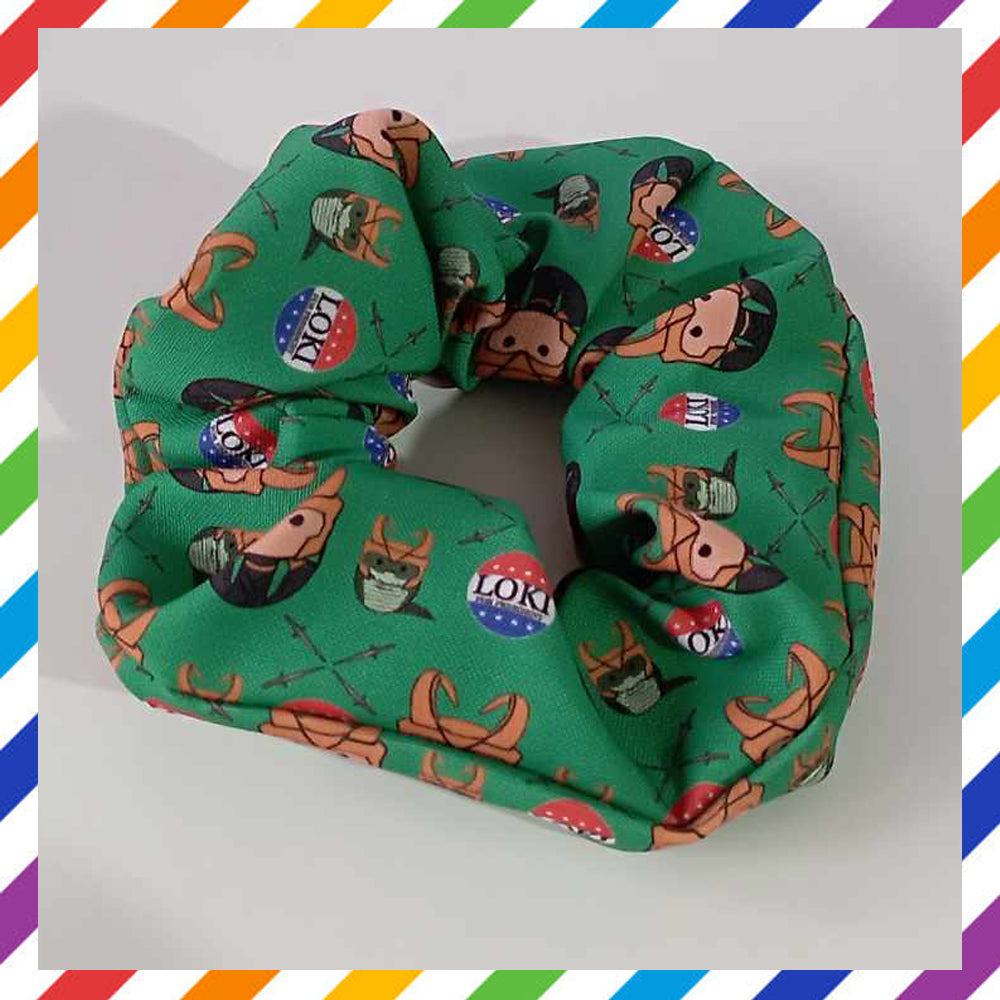 Scrunchy (elastico per capelli) con il design ispirato a Loki nella versione Potato ideata da Zefkiel Noir.