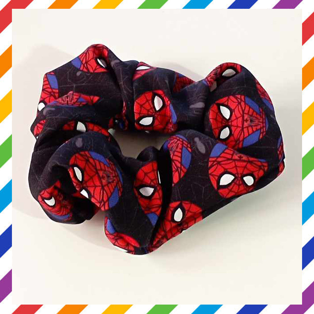 Scrunchy (elastico per capelli) con il design ispirato a Spiderman nella versione Potato ideata da Zefkiel Noir.