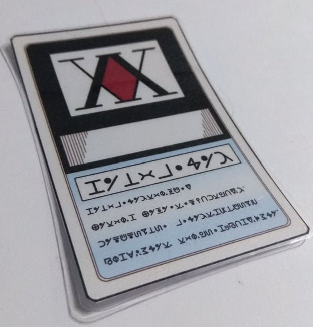 Replica del tesserino Hunter Hunter, disponibile in versione classica (plastificato singolarmente) o in versione economica (con plastificazione a taglio vivo).